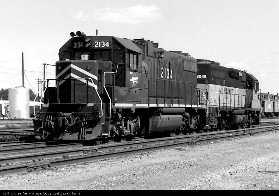Salina was no North Platte, but it did see a pretty good variety of power over the old Kansas Pacific. Here, a somewhat unlikely duo of MP GP38-2 & Milwaukee GP40 are being utilized in yard and local service.