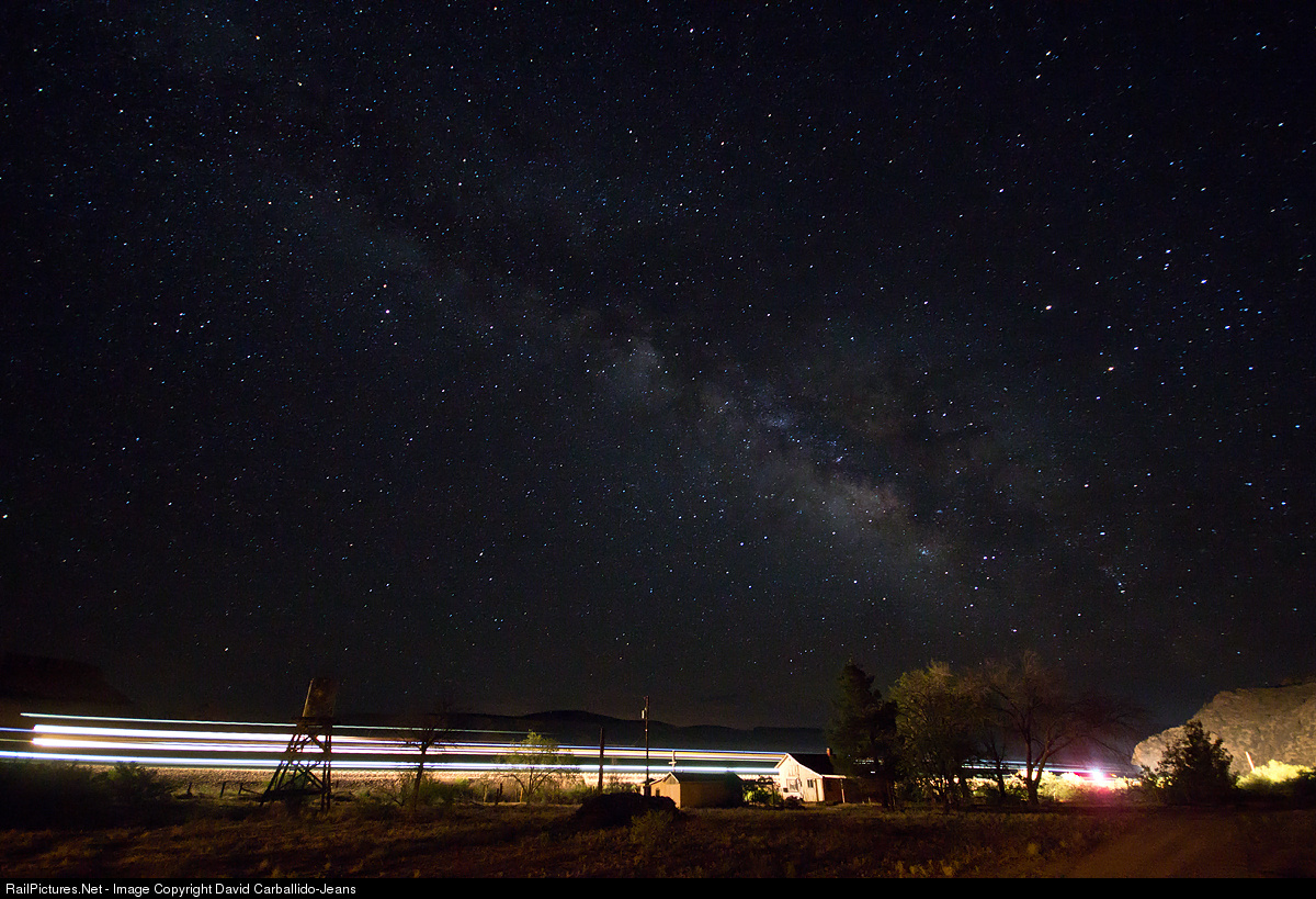 The sights of summer have arrived here in Crozier Canyon with the Milky Way and lightning glows being visible in the night sky. All seems peacefully as the warm summer air shifts from dry to wet from another monsoonal storm approaching. Soon, the tranquil feeling disappear as the sound of a heavy westbound BNSF train emerges out of the canyon. As the three locomotives pass by the former ATSF Crozier Station, the screeching sound of metal wheels on metal rail drown out the sounds of bats chirping and other wild life noises.