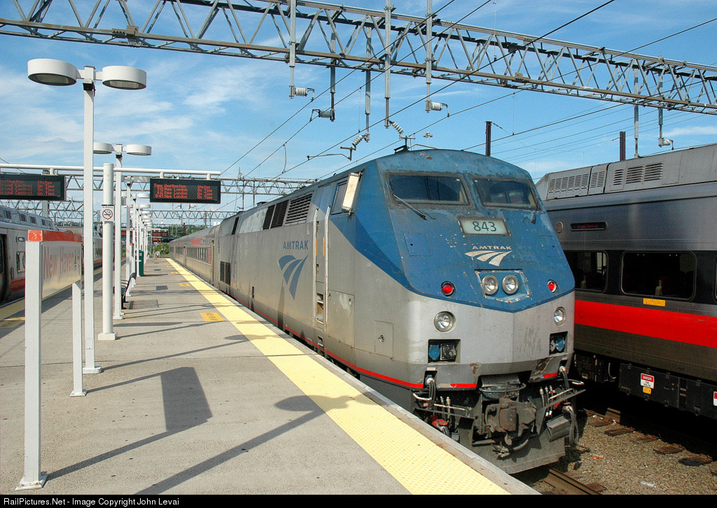 Eastbound SLE Train # 3034 heads away from New Haven Station and is heading to New London. P40 # 843, as seen in the picture, is still painted in the Amtrak livery.