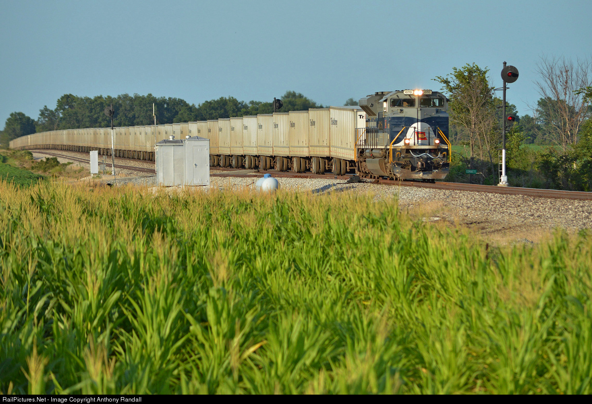 255 passes the west end of the Holiday siding with Wabash-painted SD70ACe 1070 leading.