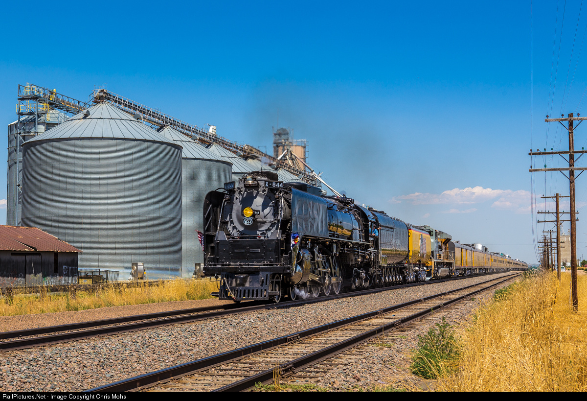 Deadheading to Denver for the annual Frontier Days Special, No. 844 charges through Platteville Colorado. Congratulations to the entire Union Pacific Steam Crew, Union Pacific Railroad, and every one that helped get No. 844 back on the road for all to enjoy.