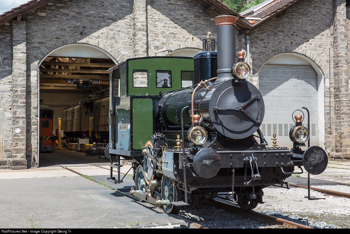 This tiny 0-4-0 cogwheel steamlocomotive "Caspar Honegger" was built in 1877 by Maschinenfabrik Aarau for the factory of Honegger in Rüti, which had a rack connecting track to the station. The privately owned little engine weighs 15 tons, has about 125 HP and was in service for the machine factory Rüti till 1951. It was made operational by the owner during 16 years work, but has no permission for running for several technical reasons. It is standing in front of the former SBB workshop in Biasca.