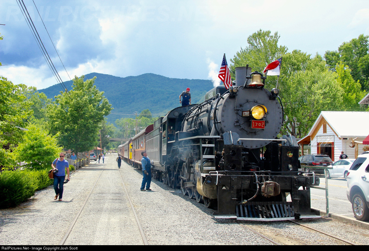 The Great Smoky Mountains Railroad No. 1702 during the engine's first excursion since its $750,000 restoration. The locomotive was welcomed with warm smiles and southern hospitality as it pulled into the Dillsboro depot for the first time since 2004. This trip was exactly twenty years after the engine had last faced east, an event not to be missed. The engine had not pulled a loaded train before this excursion, so the crew thought it only fitting to do load testing on its first run. The locomotive hauled a mixed eight-car train and idling diesel for sixteen miles, including lugging the train over two one-mile grades that were above 1.5%; pretty good for an ole' Georgia army brat. When the locomotive reached the middle of the famous Cowee tunnel, it slipped three times before finally breaking out of the west end portal. This locomotive is one of the loudest engines I have ever heard, which is quite impressive. I am so happy 1702 is back, I can't wait to see what the next fifteen years has to offer.