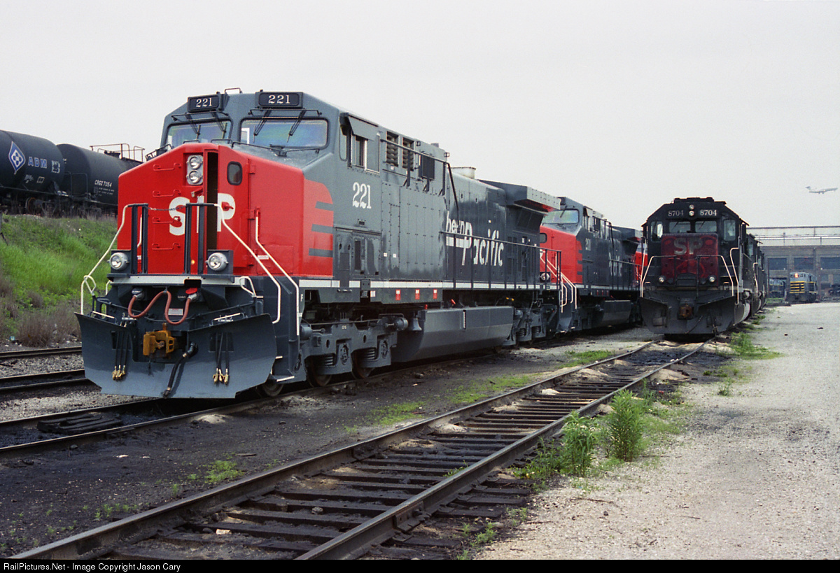 SP221, 200 and sister sit awaiting set-up for final delivery to Southern Pacific. The bran-new AC4400s will be assigned to taconite and Utah/Colorado coal service. Belt Railway of Chicago acted as Southern Pacific's classification yard and agent for Chicago. The yard became a flood of Southern Pacific equipment.