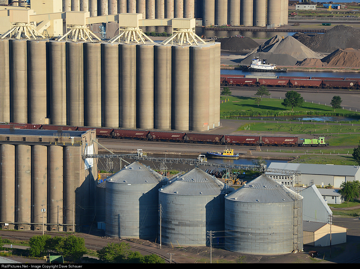 Riverland Ag's former Cargill SW1 No. 1278 is dwarfed by gain silos as it positions hoppers for unloading. This switcher typically doesn't make an appearance in the evening but a foreign vessel was docked at the terminal for loading.