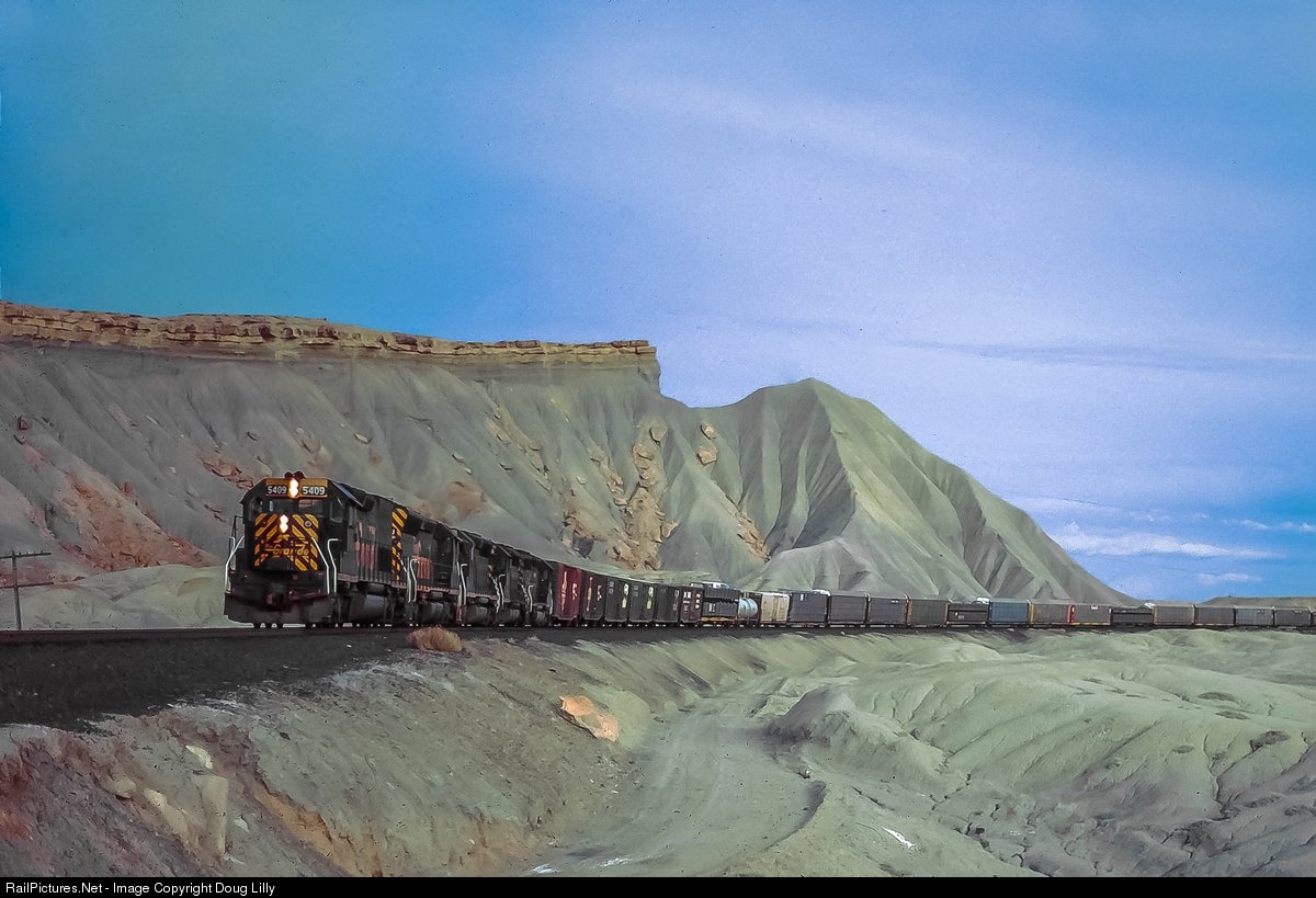 In his book Never on Wednesday, photographer Mel Patrick called this area of the Utah desert a “moonscape”, and I can’t imagine anywhere on earth that would more closely resemble the lunar surface. Here the sun has ducked below the horizon, but there was still a westbound near and we waited for it. There’s definitely a feel of railroading on the moon.