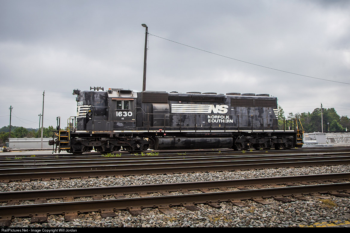 | Former Norfolk & Western 1630, one of 11 remaining highhood SD40-2's on Norfolk Southern's roster sits at Panoma Yard in Greensboro, NC under dreary skies. |