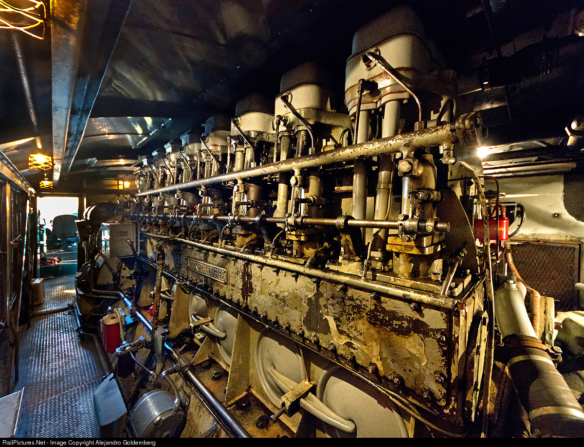 1500hp prime mover of this BLH, built in Edistone, PA. This is an export Road Freight imported to our country Between 1953 and 1954 and numbered #5001 to #5051. There were assigned to Ferrocarril Roca, Zapala and Bariloche lines. Now it has been carefully restored to its original condition by Ferroclub Argentino members.