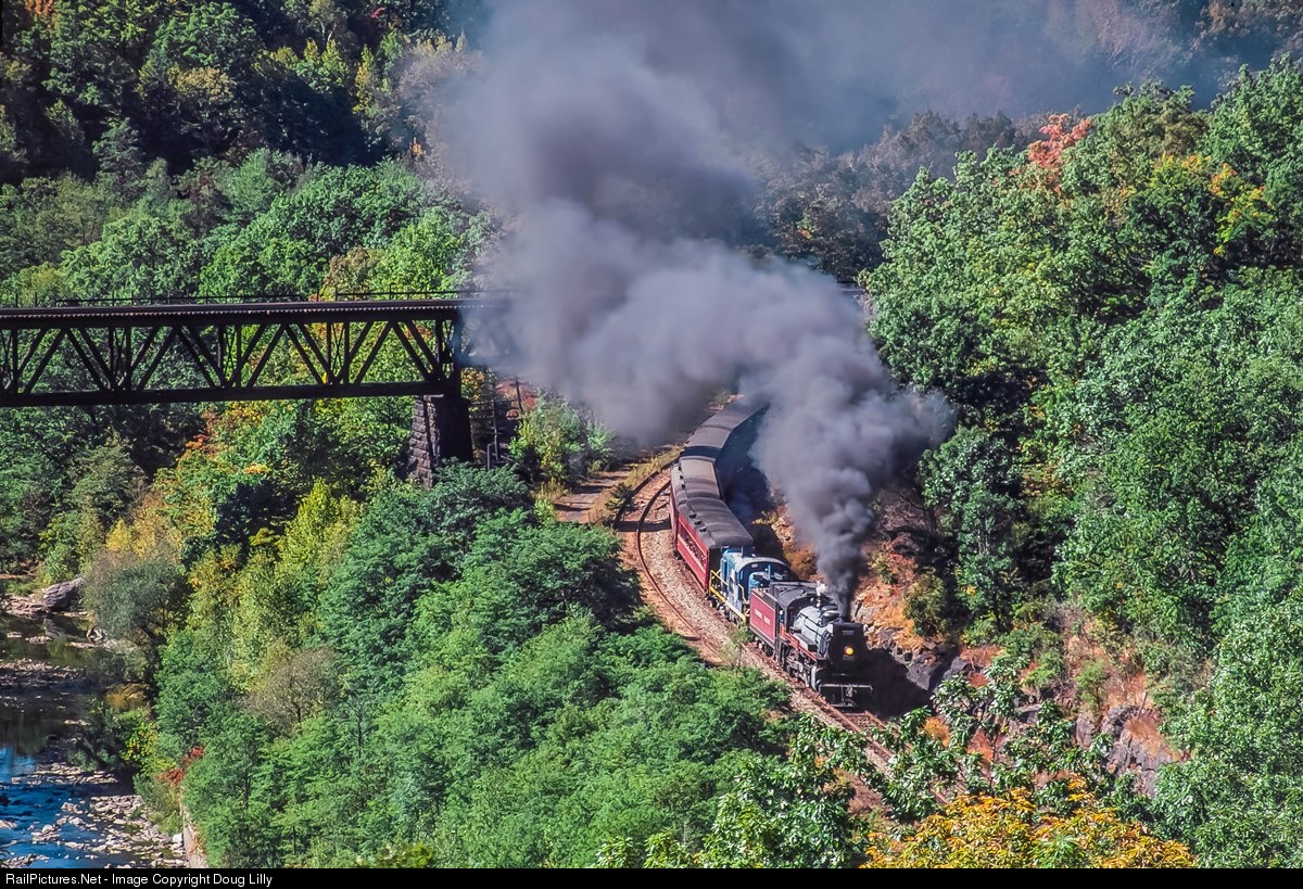 | The crew of Canadian Pacific 2317 seems to be intent on notifying folks on parallel Interstate 84 know that there’s a new attraction in the Scranton area. The Steamtown train works upgrade on the former Lackawanna main line at Dunmore, Pennsylvania, passing under a bridge that carried the Erie’s Jessup branch. |
