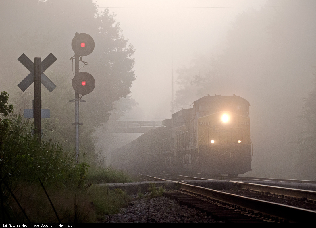 The stillness of a quaint Catawba morning is briefly disrupted as a Cincinnati bound coal train emerges from the abyss.