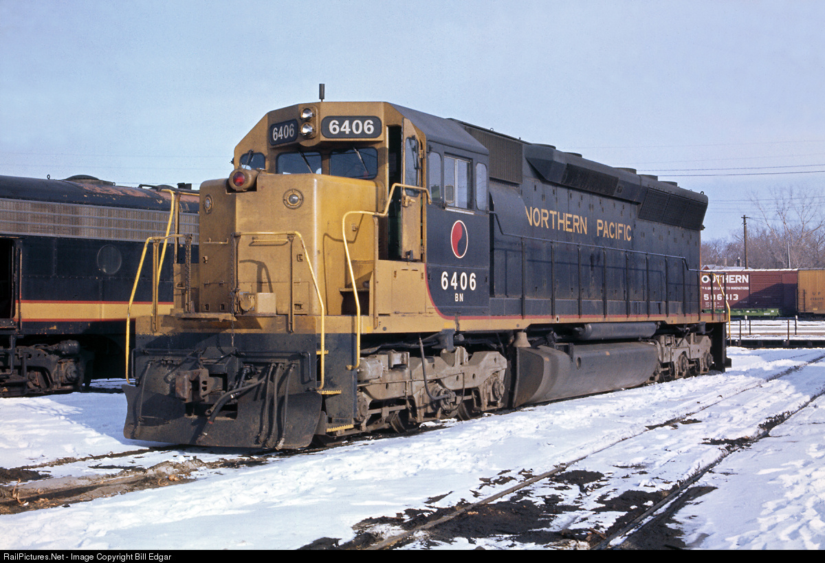 SD45 BN 6406, x-NP 3606 is parked at Harrison St., the former GN roundhouse next to a former NP F9B. It's a cool day, but not too much snow. I recall being too excited about shooting new BN green power to take enough time to capture the disappearing liveries of CBQ, GN, and NP. I also recall cruising into Chicago five years earlier on the Morning Zephyr and spotting my first sighting of brand new NP SD45s along the triple track speedway into town.