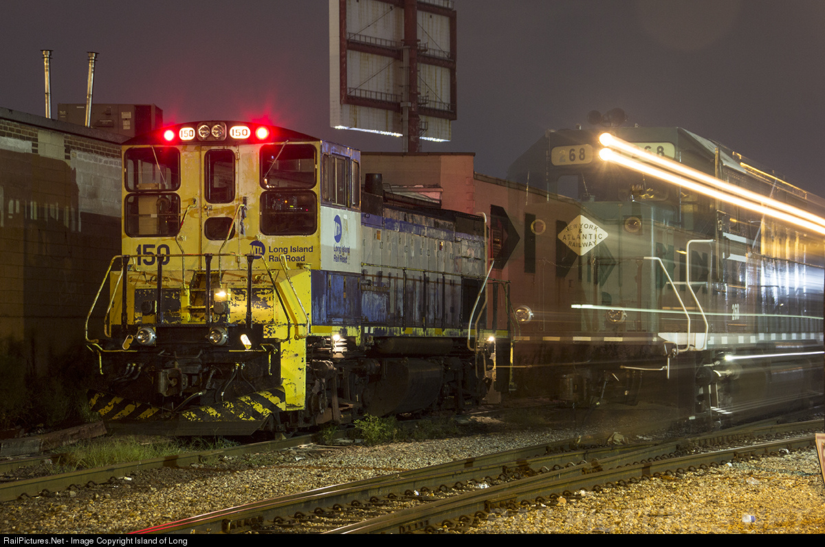 | As the Long Island City protect engine sits idle, an NYAR extra runs past it with empty cars headed toward Harold Interlocking for dirt removal. |