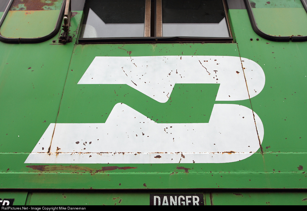 The Burlington Northern logo is rare to see on any of today’s locomotives, but can still be seen on two BN C30-7s at Alliance, Nebraska. The rust-flecked white logo is seen on the cab of BN 5549 on May 23, 2014. After an active life hauling coal trains, Nos. 5545 and 5549 spent their later years as back-up generators for the Alliance Locomotive Shop. The two now wait their fate on an old elevator track at the end of Platte Avenue on the north side of Alliance yard.