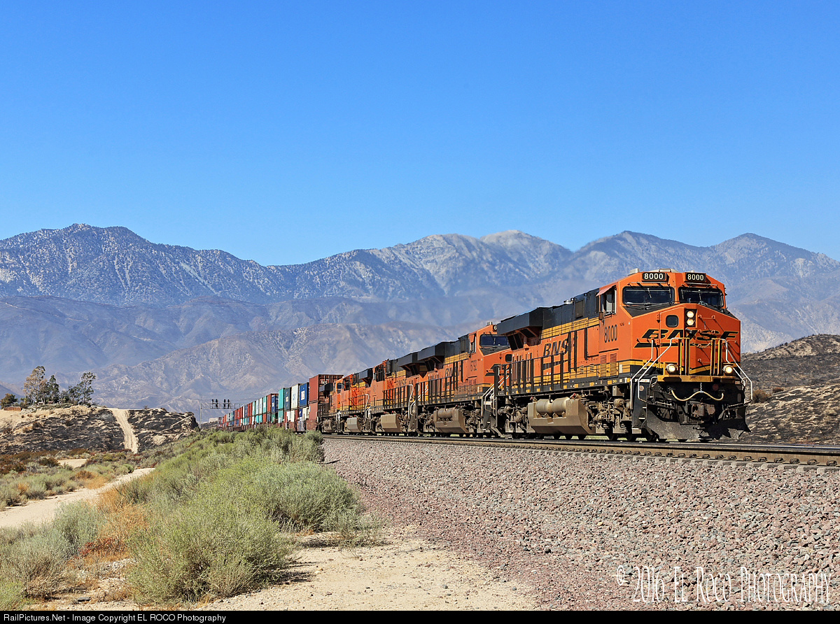 BNSF 8000 at Hill 582 - [Blue Cut Fire Series] - While most of the Cajon Pass was burned over in the Blue Cut Fire (right side of the picture) the vegetation surrounding the east side of Hill 582 remained intact, apparently protected on the north side by the double tracked BNSF main line.