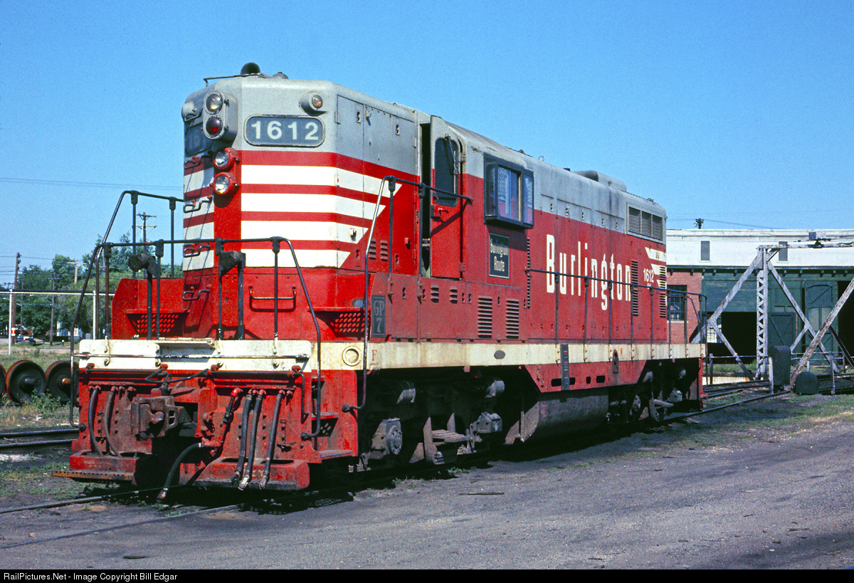 Glistening Chinese Red brightens the day as former CB&Q GP7 256, now BN 1612 soaks up some sun at the BN North La Crosse, WI roundhouse. Decked out with a Mars light and GP7 plaque, Burlington's scheme is now missed everywhere West.