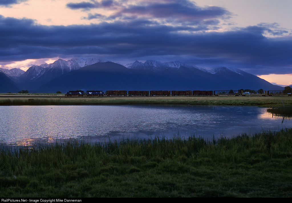 At sunrise on September 23, 2008, Montana Rail Link’s Polson Local, powered by MRL GP9 No. 111 and GP35 No. 402, heads north at milepost 16, between Charlo and Ronan, Montana. The magnificent Mission Mountains provide a rugged backdrop, with morning clouds flowing over the mountaintops that are dusted with an early snow. Closure of the Plum Creek Timber Co. sawmill in Pablo in 2009, the largest shipper on the Polson Branch, was a major blow to the line. The branch was embargoed in 2011 and hasn’t seen a train since.