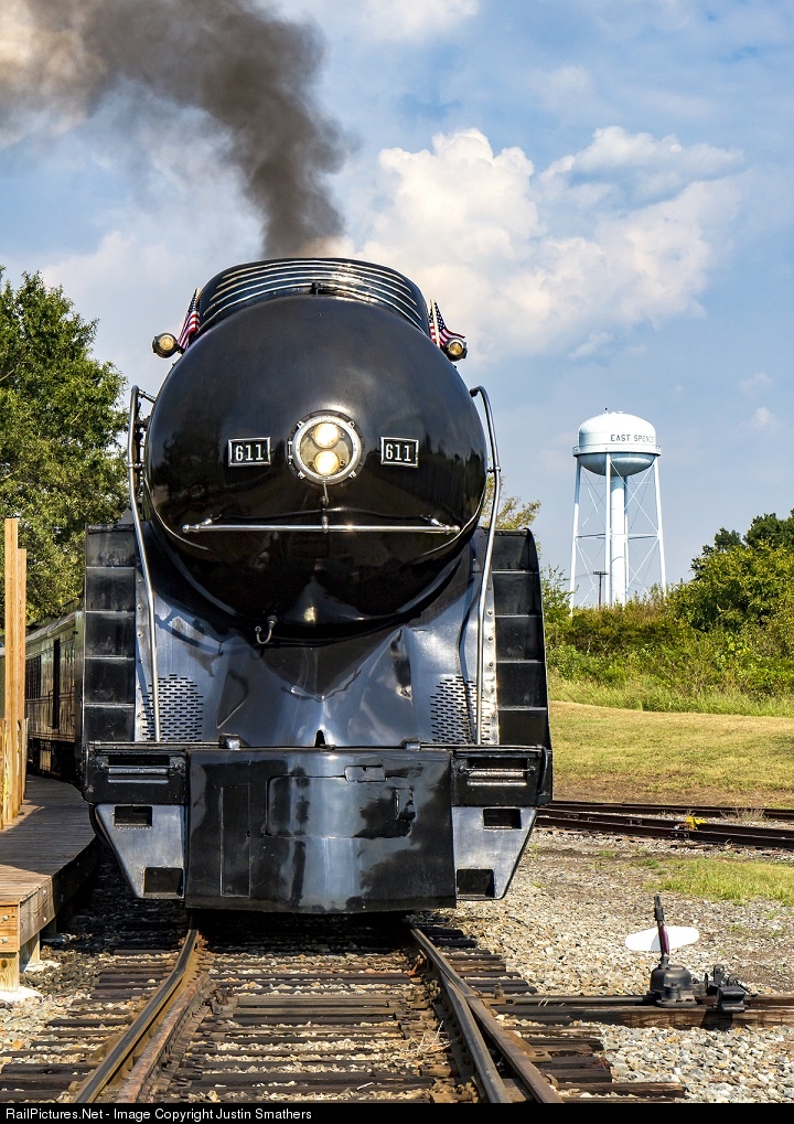 | N&W 611 takes during a brief pause between museum train runs. The small American flags are a nice touch as the world remembers the terrible morning of September 11, 2001 some 15 years ago. |