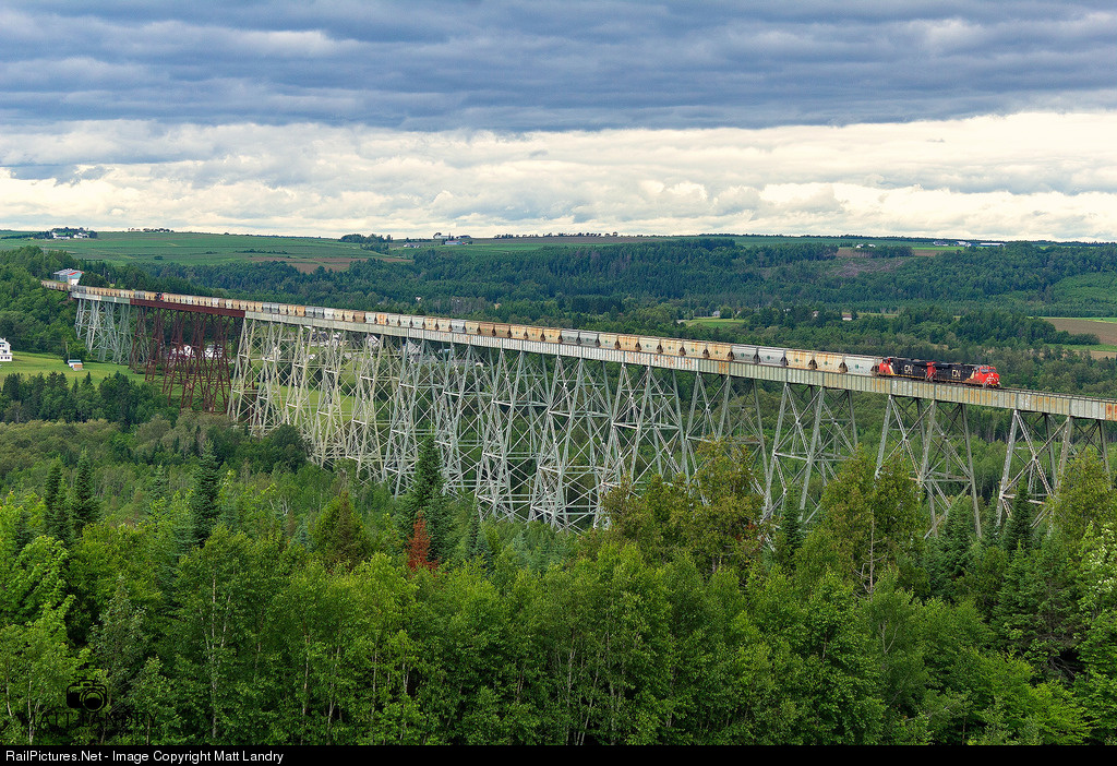 THE BIG TRESTLE CN 2821 leads a B730 potash train as they cross over the 3,920 foot Salmon River Trestle on an overcast morning. This was a new vantage point for me to shoot at, and It's worth the trek. My closer up shot of this train can be found HERE.