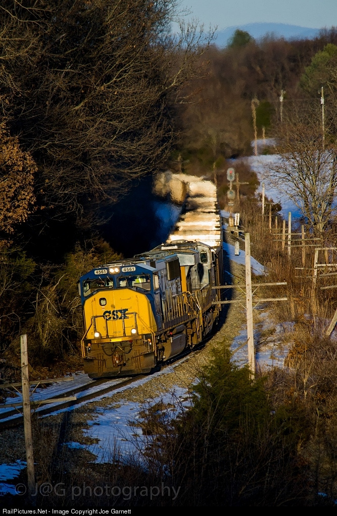 Just one of 5 active SD70MAC's in YN2 paint (at the time), CSX #4561 leads an empty Wheelwright train out the former C&O Mainline, as evident by the still standing, and still good looking signals seen in the background, as well as all the code line poles. This location is known as 'Buttermilk Springs', one of the many unique signals located along this part of the old North Route between Richmond and Clifton Forge!