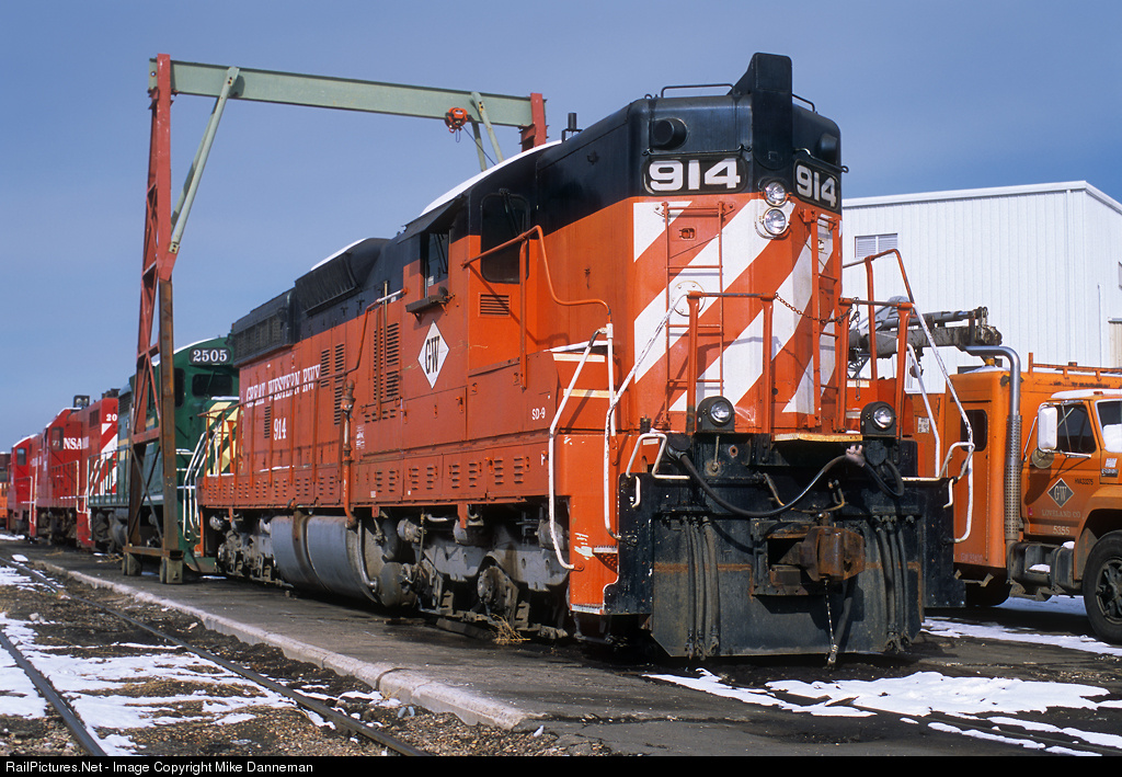 Great Western Railway EMD SD9E No. 914 rests at Loveland, Colorado, on November 27, 2001. This 1955-built machine is former Southern Pacific SD9/SD9E (Ex. Nos. 5430/3908/4302).