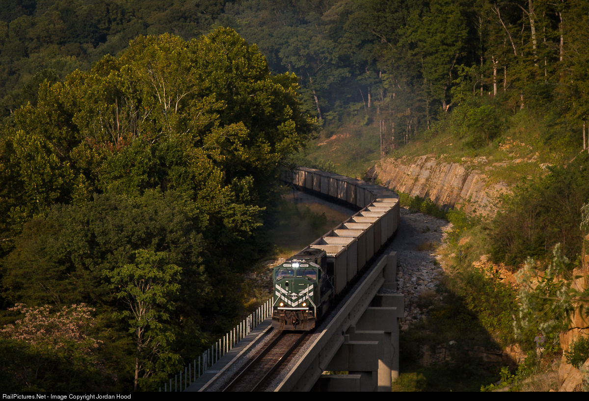 An empty Paducah and Louisville coal train out of the Mill Creek Generating Station climbs over the first of two bridges over Muldraugh Hill in the quickly fading evening light.