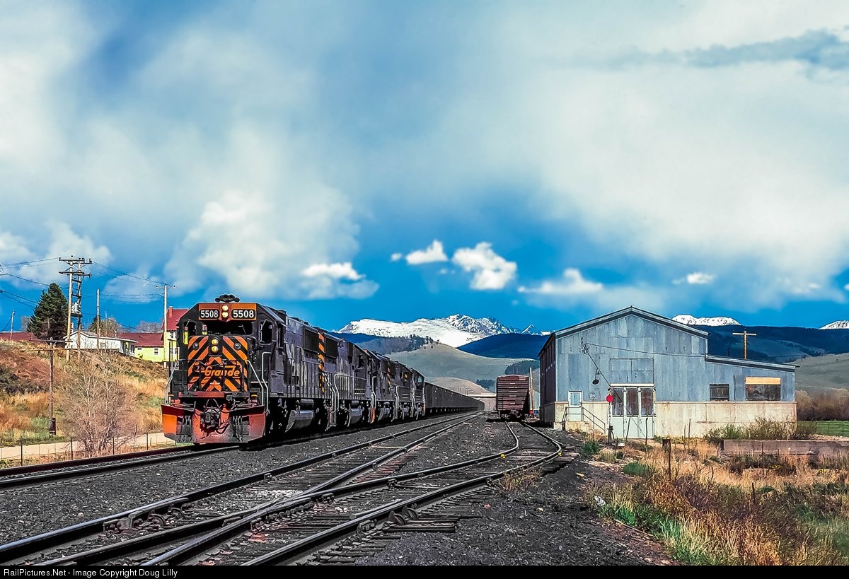 Five, count ‘em, five Rio Grande SD50’s roll an empty hopper train through Granby, Colorado. The 46 car train is somewhat overpowered with 17,500 horsepower of the newest locomotives on the D&RGW roster.