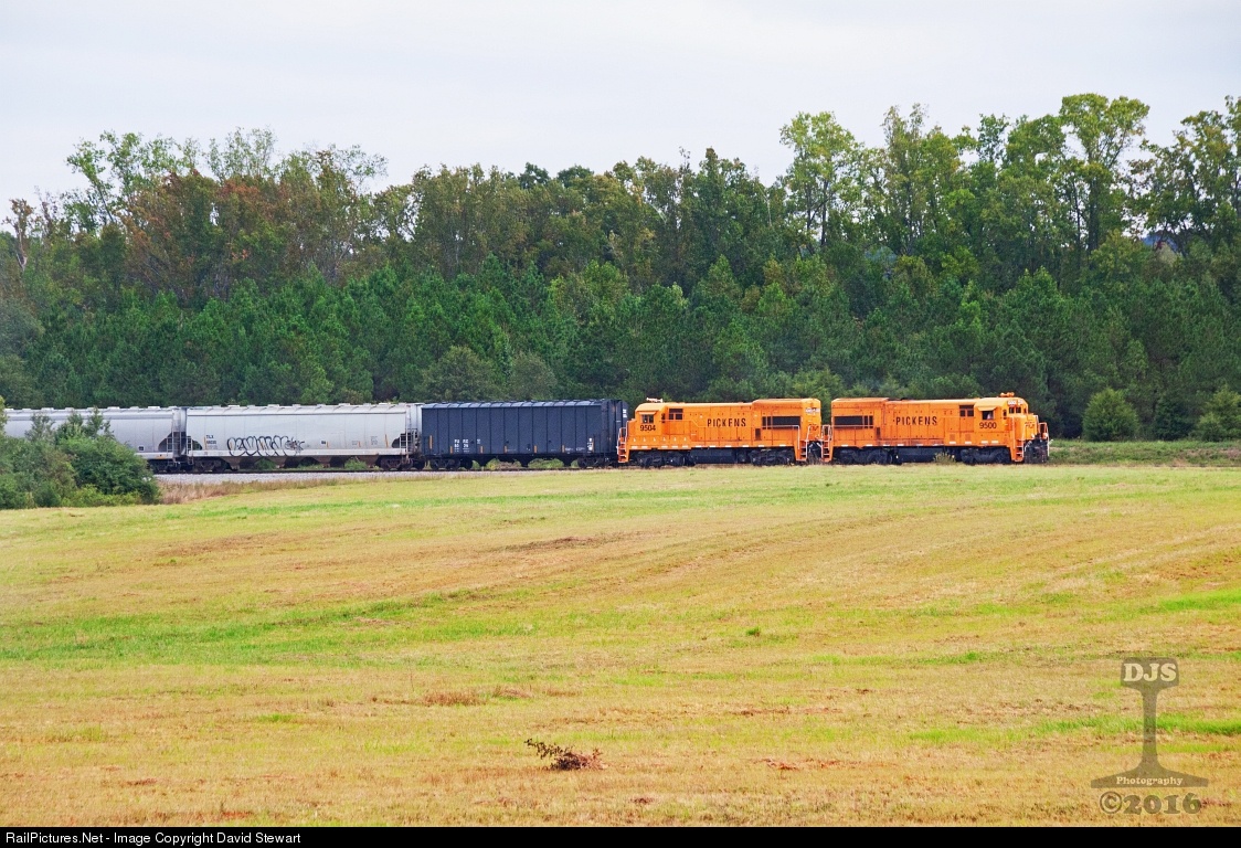 | The Pickens Anderson Job is seen starting it's run towards Anderson, South Carolina with U18Bs 9500 and 9504 after gathering car loads from customers. |