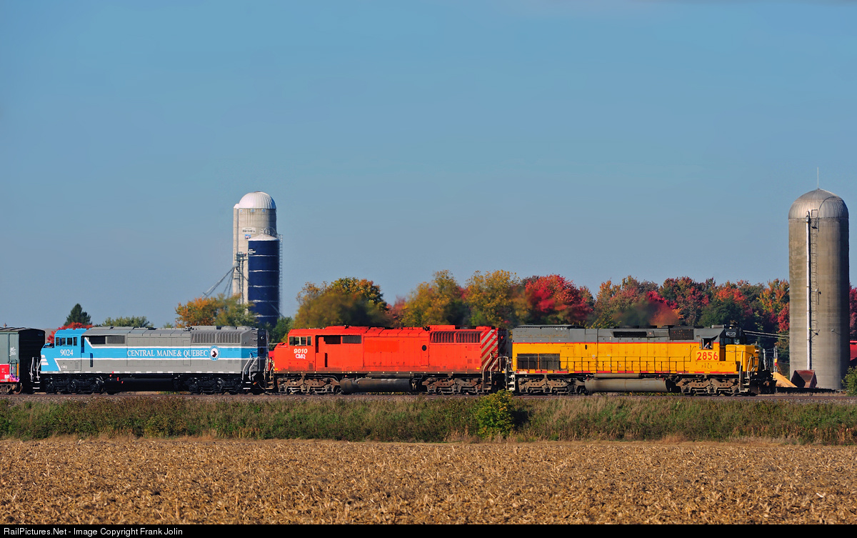 Central Maine & Quebec #2 is heading south toward Brookport on the Adirondack Subdivision. Trailing is freshly painted ex Canadian Pacific CMQ #9024.