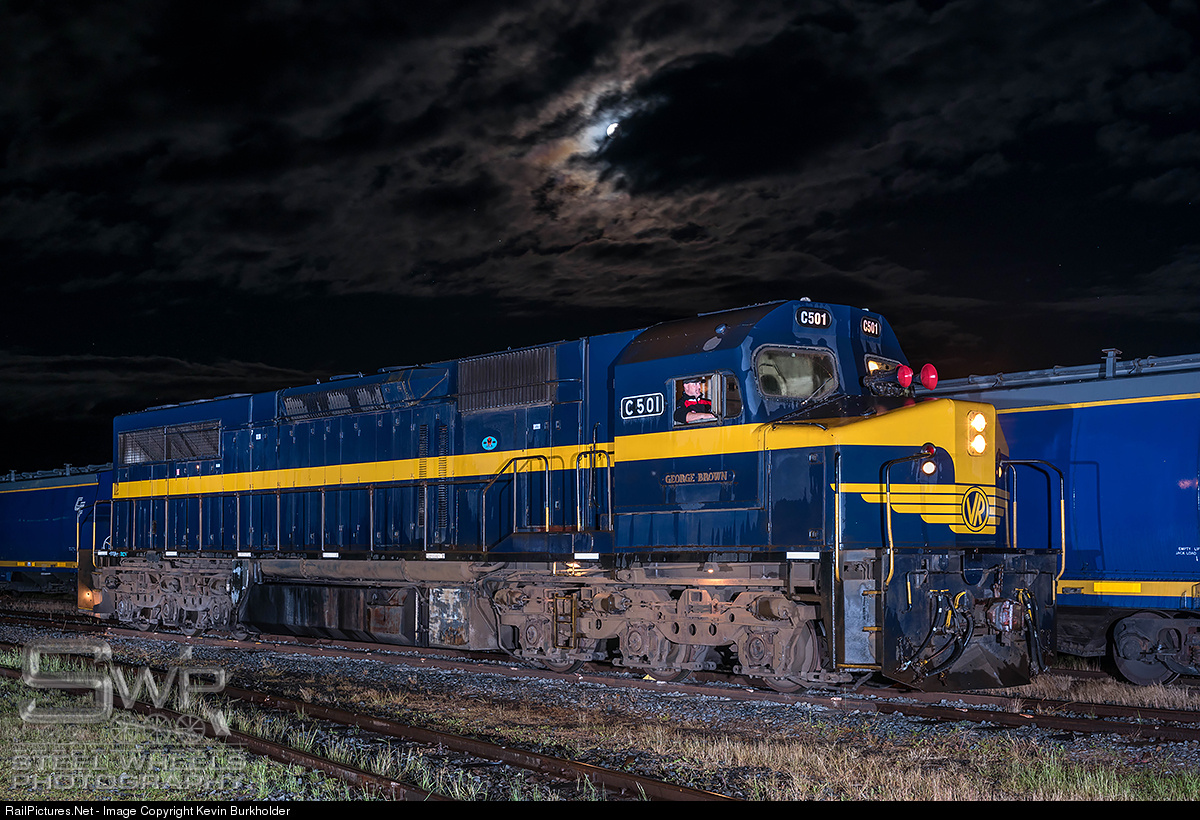 | With Mr. C-class - Kev Shultz - holding down the cab of the class unit C-Class or the equivalent to an American SD40, here is a night photo with a rather ominous nicht sky overhead. The C501 belongs to the Seymour Rail Heritage Centre in Seymour, Victoria, and is on lease to Qube Logistics for service between Junee and Sydney. |