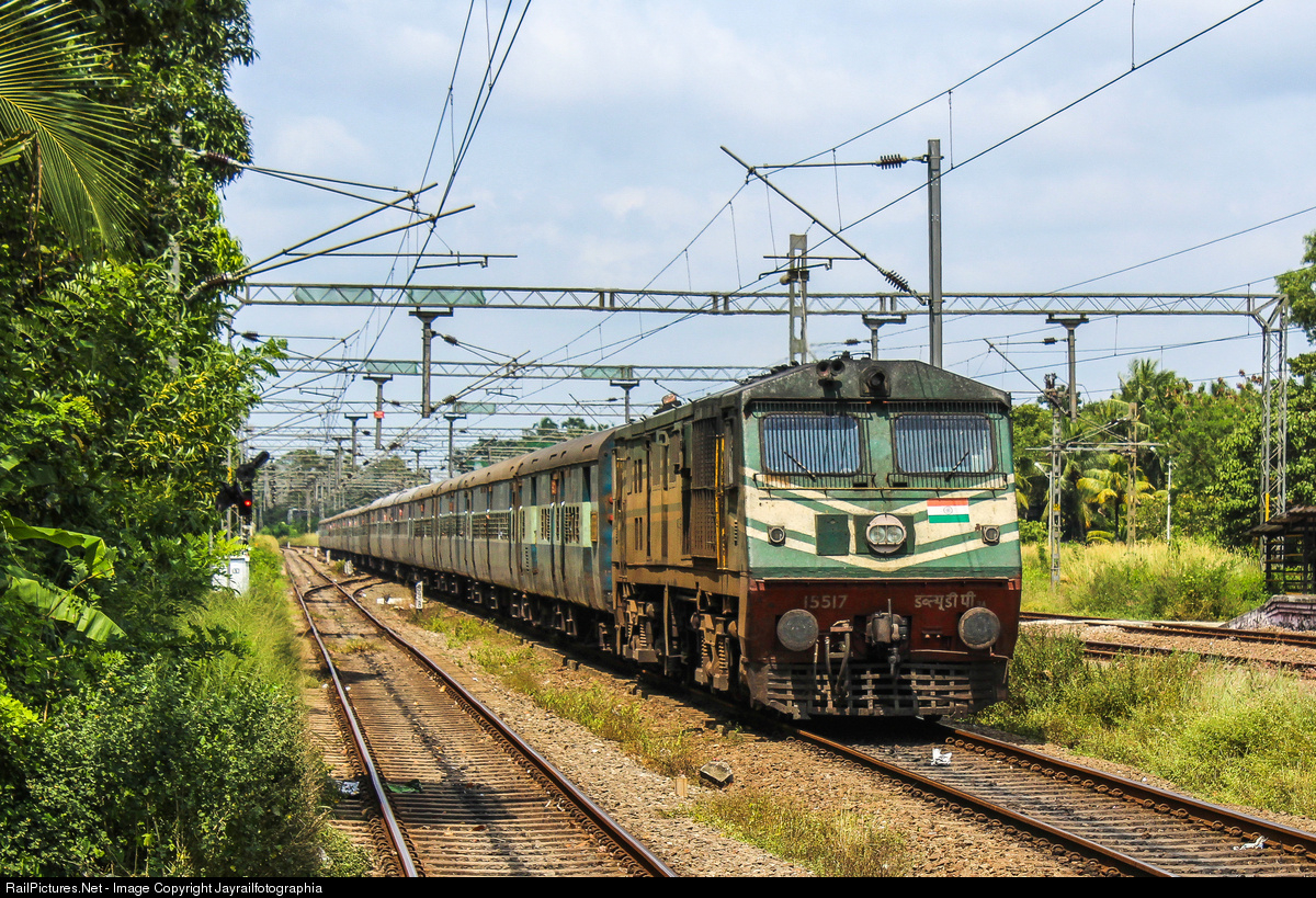 Dual cab ALCO arriving at the lush green Kayankulam Junction with H.Nizamuddin - Thiruvananthapuram Weekly Superfast Express