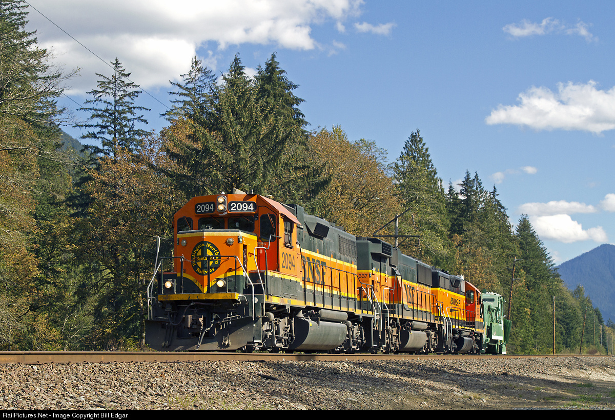 A nice A-B-A Geep set rolls west with a former GN/BN dozer at Baring, WA, headed west toward Everett, WA after picking up the dozer at Skykomish. This color scheme (including the revised version on the trailing unit) is arguably the best BNSF looks.