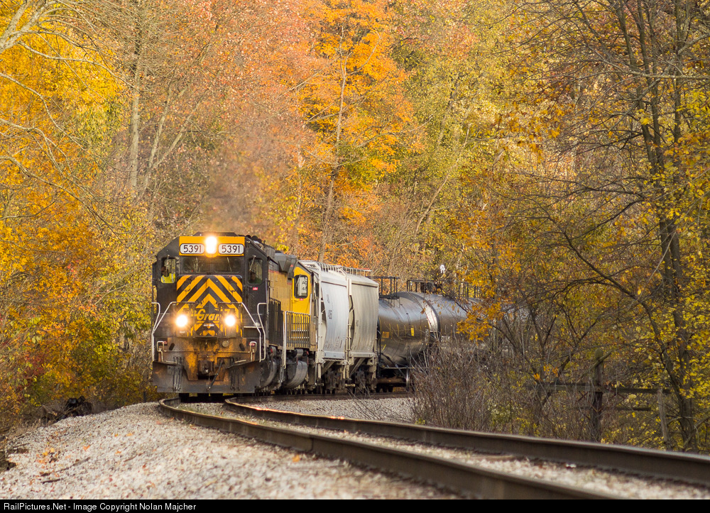 | Peak Fall color arrived later than usual this year in Northern Ohio and this is evident in this scene which depicts Wheeling & Lake Erie train 237 working west near Dalton, Ohio with one of the railroad's Denver & Rio Grande Western painted SD40T-2's leading the way.
