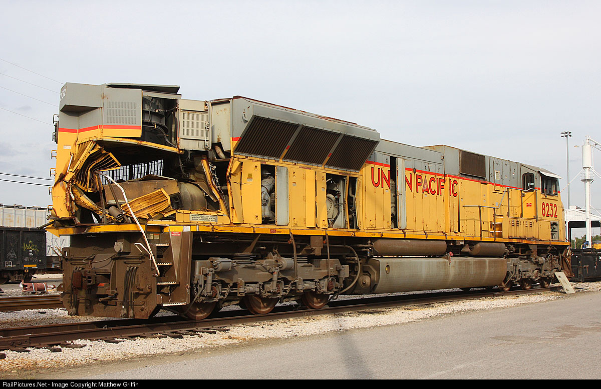 4 years after it nailed an 18 wheeler at a crossing, UP 8232 sits awaiting it's destruction, most likely...