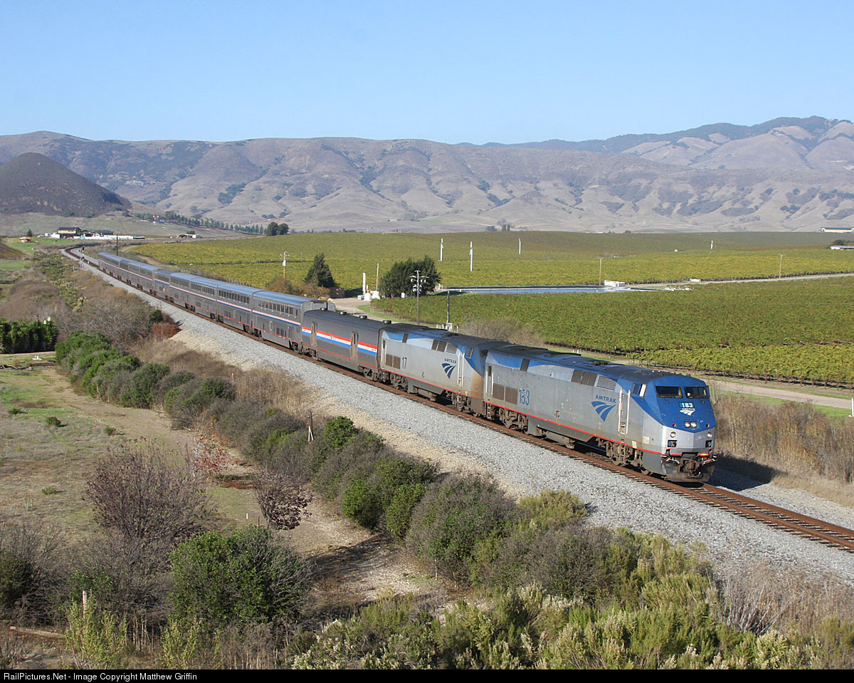 Running daily between Seattle and Los Angeles, this train offers running alongside the Pacific Ocean and through the Cascade Mountains. It has been one of Amtrak's long-distance success stories.