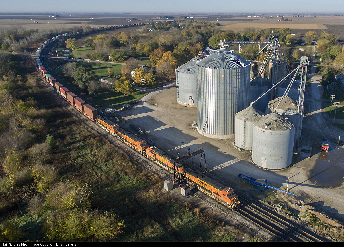 An eastbound stack train wastes little time rounding the sweeping curve at Ancona along BNSF's busy Chillicothe Subdivision. Until 1982 the Santa Fe operated a branch line from this location, know as "Ancona Station" at the time, to Pekin, just south of Peoria. Though the line is long gone, the right of way can still be seen in many areas.