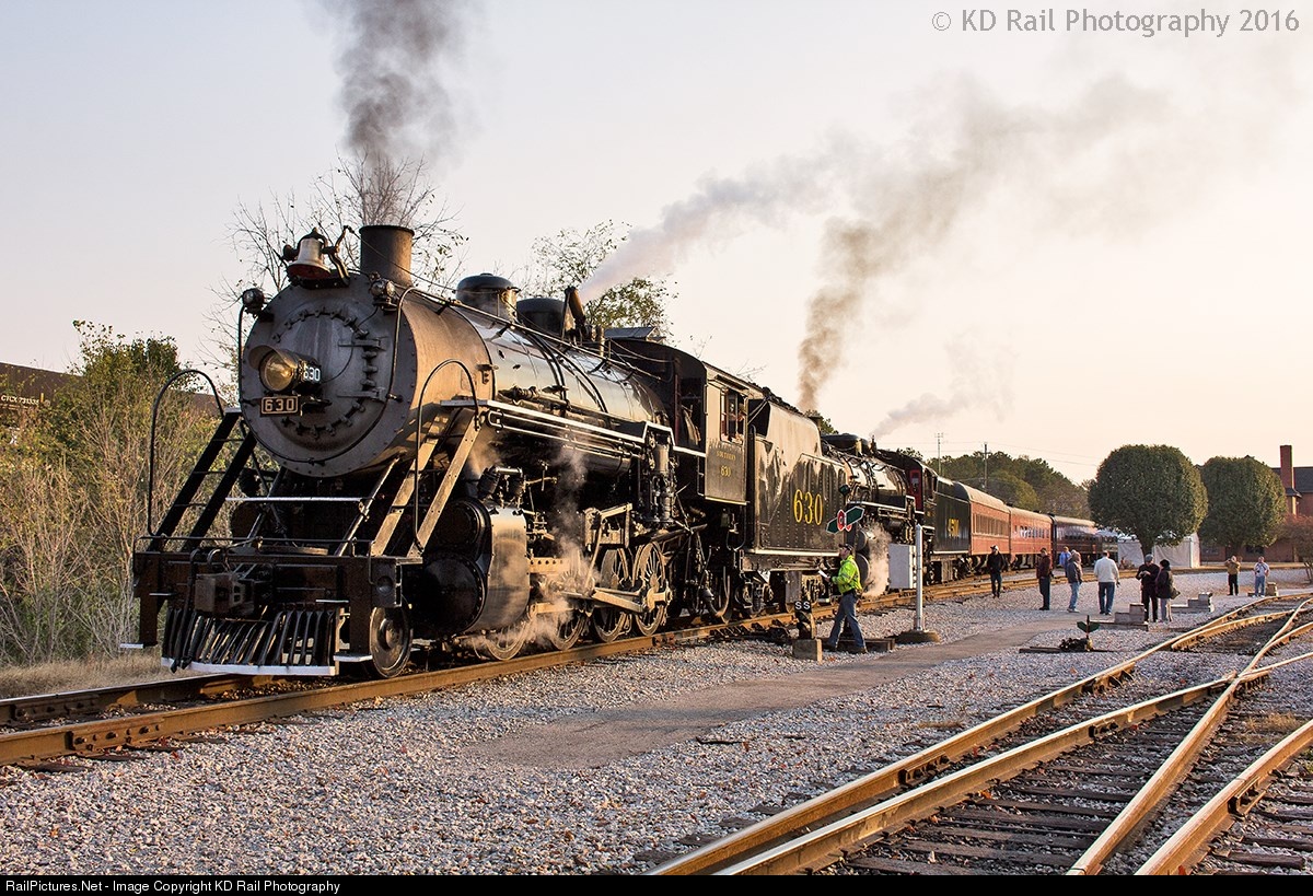 As the sun rises on this cold hazy November morning, a small crowd of onlookers gathers getting their photos, and being caught in the mist of a daze admiring the beauty of two century old steam locomotives as both engine, and its crew wait for the 9AM departure time at the Grand Junction Depot in Chattanooga, TN. Today would mark the 3rd Annual Autumn Leaf Double Header Special weekend operated by the Tennessee Valley Railroad, featuring both Ks-1 Class SR 630, and the famous Ms-Class SR 4501 pulling a 8 car consist on a 100+ mile round trip to Summerville, GA. This is also the last weekend of the Summerville Steam trip for both locomotives. Once the weekend run is finish both Southern Rwy steam will take a four, and a half month break during the winter season so the crew can do their yearly maintenance on both engines.