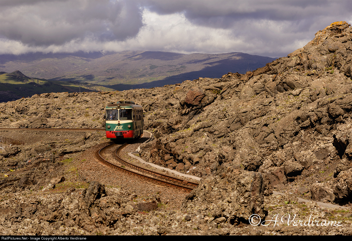 RailPictures.Net Photo: Ferrovia Circumetnea (FCE) ADe14 at Bronte (north side of Volcano Etna), Italy by Alberto Verdirame