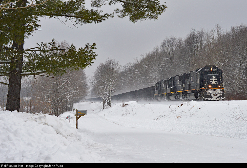 Lake effect snow is piling up as a trio of IC SD70's lead a loaded ore train to a crew change at Greenville as they head south on a winter's day.