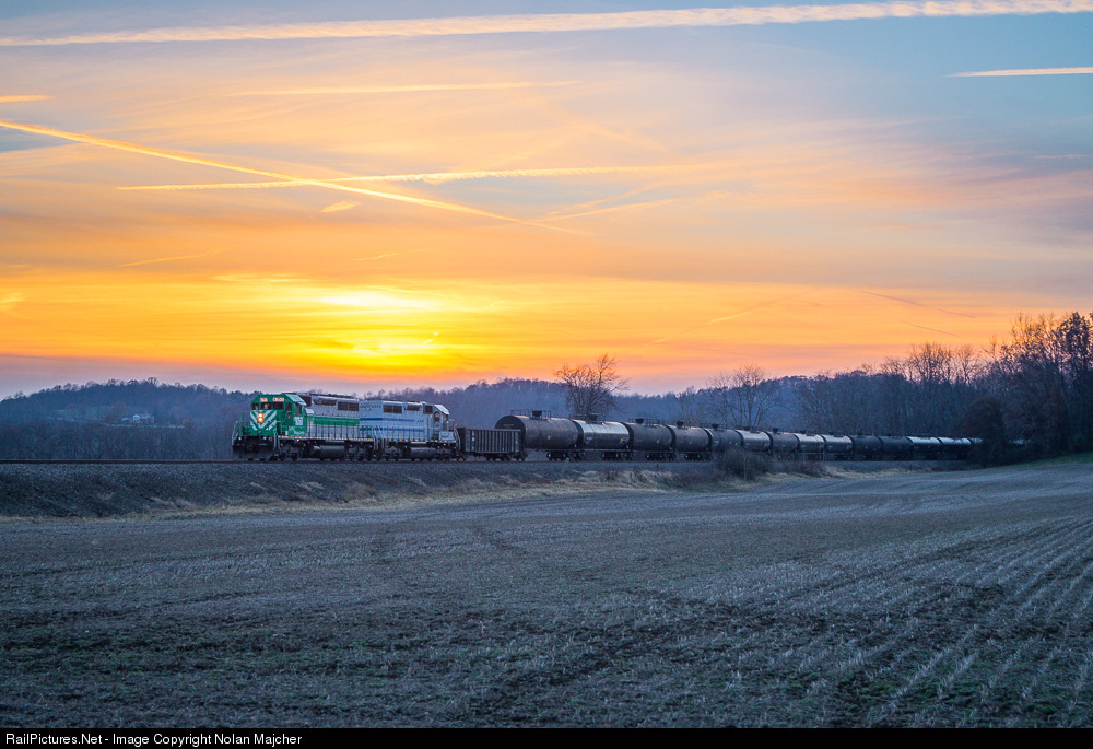 With a beautiful sunset in the background, Wheeling & Lake Erie train No. 214 hustles eastbound just outside the quiet town of Bolivar, Ohio with a pair of SD40-2's leading the way.