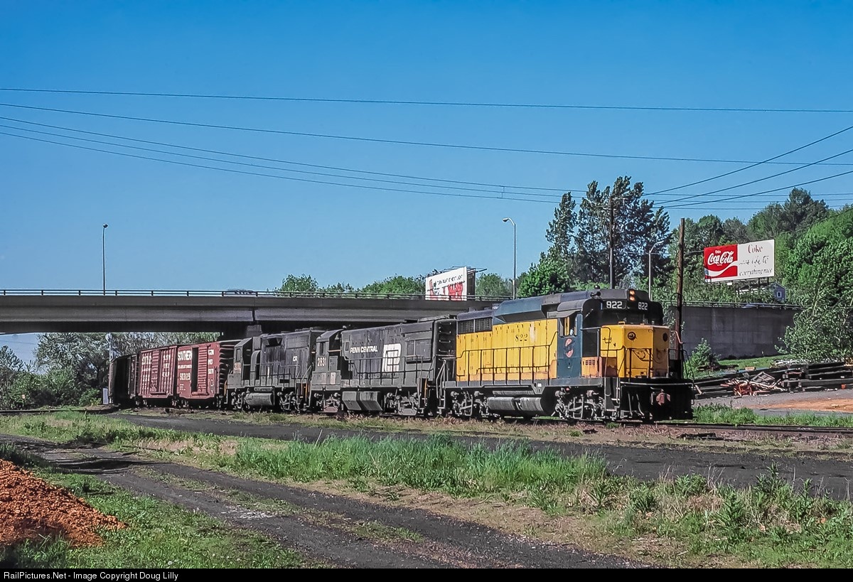 Paraphrasing the familiar mid-‘70’s Coca-Cola advertising slogan from the billboard in the photo, one of the ways that the drab monotony of the ex-PC power that dominated early Conrail was broken was with leased power. Predominantly CNW, CN and BAR, foreign road units added a splash of color to CR motive power consists. Although the lack of cab signal equipment prevented the leased units from leading in ex-PRR territory, the off-line units occasionally lead in other territory, as seen here coming eastbound with 111 cars under the Hamilton Street bridge in Allentown.