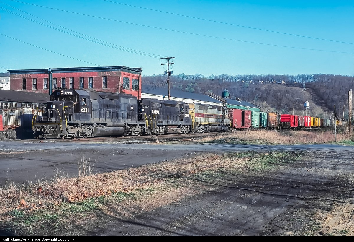Making its exit from Allentown yard, a 104-car westbound Conrail manifest passes the building that once housed the Allentown Plant of the W. T. Hahn Motor Truck Company. In 1929, Hahn merged with the Selden Motor Vehicle Company of Rochester, New York. The new venture, the Selden – Hahn Motor Truck Company, lasted until 1931, when the firm moved all operations to the plant in Hamburg, Pennsylvania, and was renamed Hahn Motors, Inc. Specializing in high-quality fire trucks and apparatus, Hahn Motors finally closed its doors in 1989.