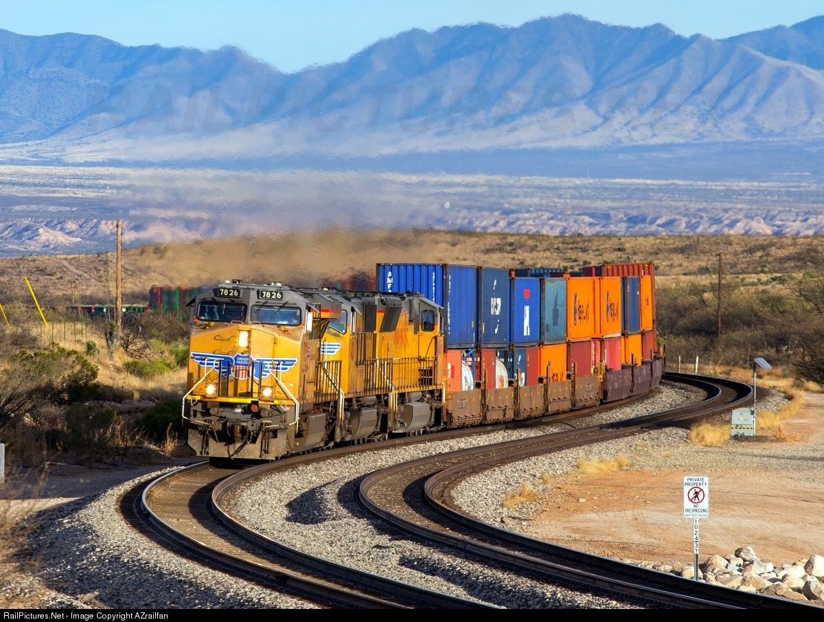 | UP 7826 leading the Englewood/Houston, TX to Long Beach, CA stack train past MP1024.37 on the UP Lordsburg Subdivision |