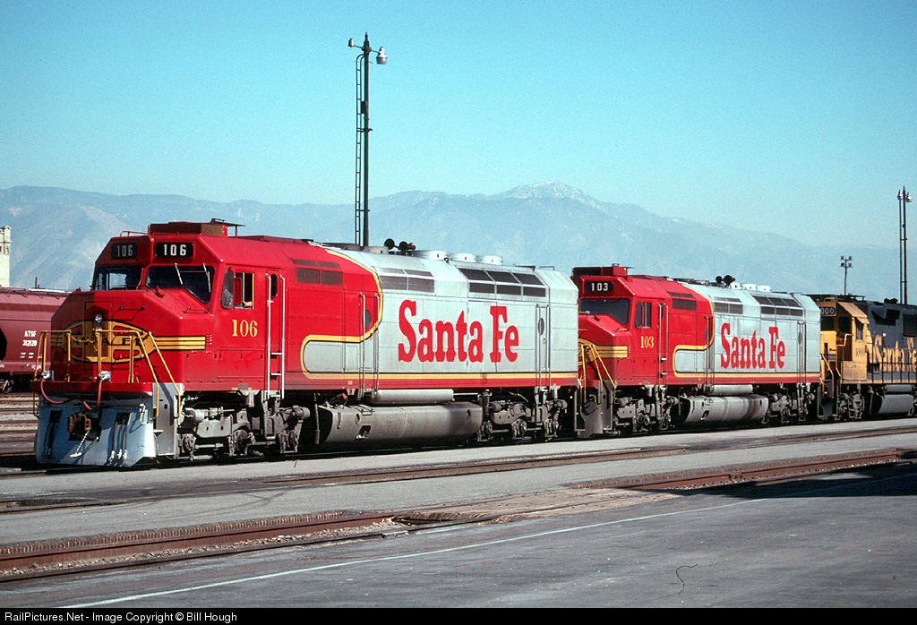 RailPictures.Net Photo: ATSF 106 Atchison, Topeka & Santa Fe (ATSF) EMD FP45 at San Bernardino, California by Bill Hough