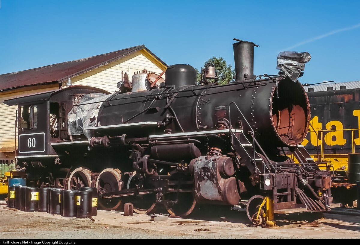 Great Western consolidation 60 gave up hauling sugar beets in 1965, and came east to the tourist hauling Black River & Western in New Jersey. The 2-8-0 has now been hauling passengers for over a half-century, with occasional down time for maintenance and overhauls. Here it is shown during one of those periods at the shops in Ringoes.
