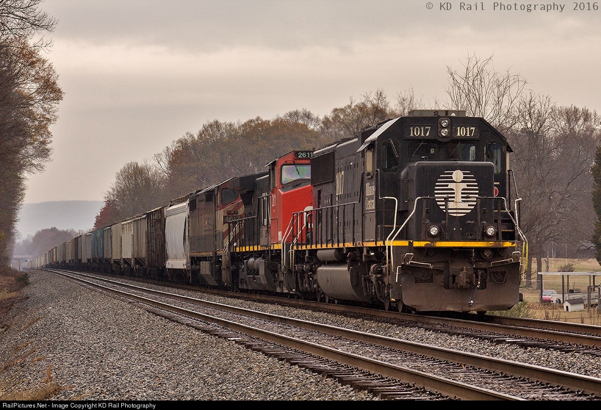 A Mid-American Christmas As the light rain begins to fall NS 42A is stop, and tied down on the main 1 track for the next few days on the CNO&TP 2nd District with an neat surprise at the lead. With a combination of an Illinois Central, British Columbia Rail, and a Canadian National unit it is the picture perfect motor consist that one could enjoy to see on a wet Christmas Eve in Southeast Tennessee. It is also a fine example of what was once two of the biggest players, and important railroads in North America that has been bought by the Canadian National Railway.