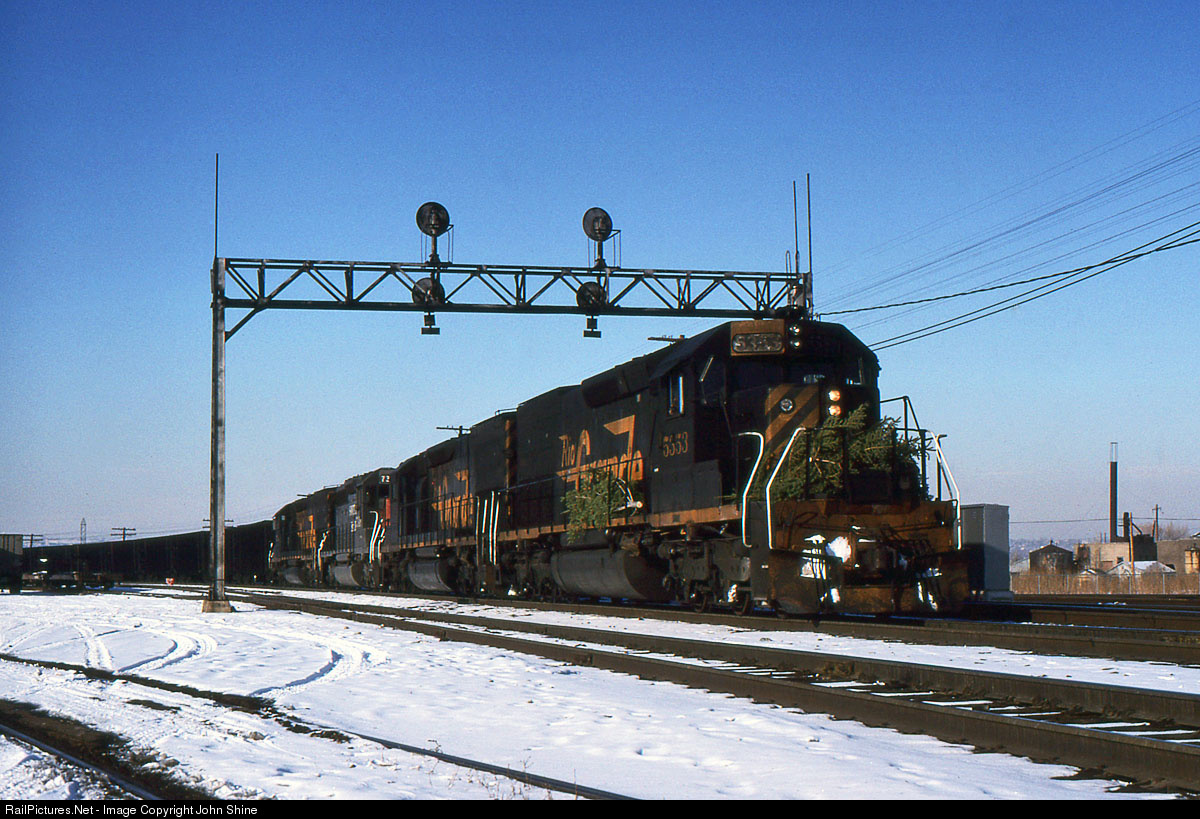 The crew of this Eastbound coal train has apparently stopped along the way to cut down their Christmas trees! This Public Service loaded coal train is pulling into No. Yard.