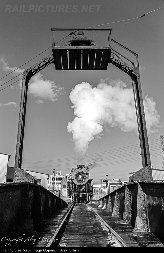 | In a timeless scene of steam in Southern California, Santa Fe 3751 slowly backs off the Redondo turntable and onto the coupling track as it heads for North Yard to join the display equipment waiting there it will escort to Union Station the following morning. The big Baldwin and turntable alike were both built in 1927 - some 89 years ago |