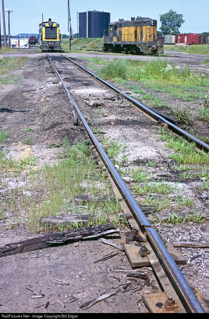 CNW made a lot of improvements in the 1970s and 80s, but were pretty frugal when it came to yard trackage. Here at Altoona this view shows a transition track to a scale, which obviously has seen better days, but was still in use. GP7 1628 and a "Baldwin half-breed" switcher look on in the background. The rebuilt Baldwins replaced Alco S2s in yard swtching in Altoona in the early 70s.