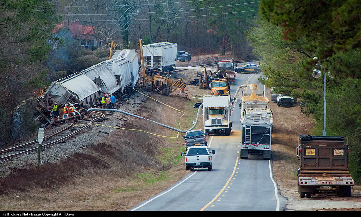 Looks like Hartwell had a not so minor mishap sometime this week. Crews are seen transferring the loaded feed cars into trucks before they are cleared of the ROW.