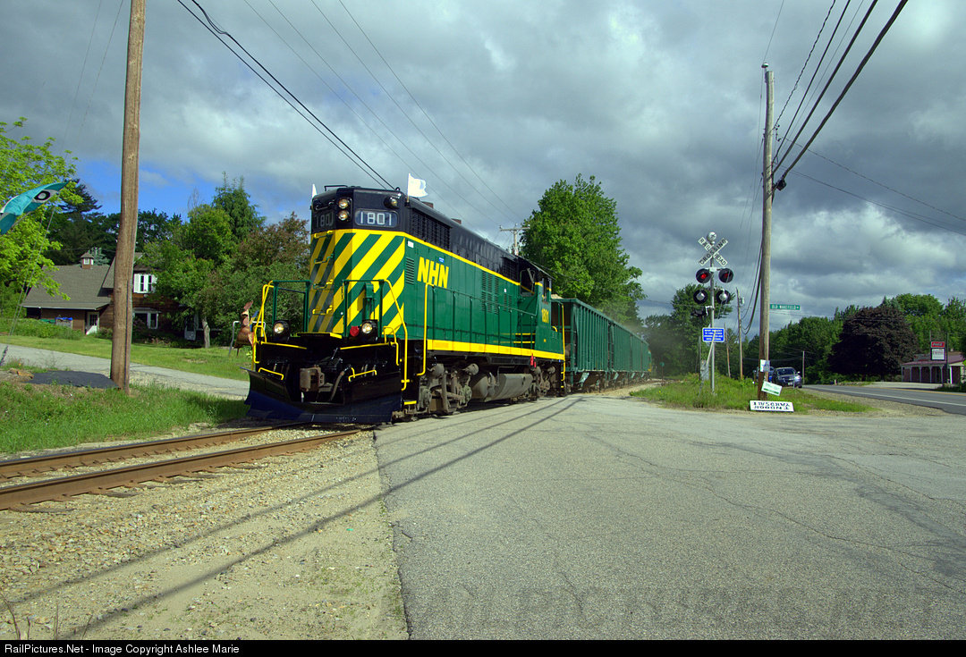 GP18 #1801 (Former NEGS #503) in fresh paint leads 4 clean gravel cars and caboose #100 out of the pit. The 4 gravel cars will be set off in Tri-City and the 1801 with caboose will proceed to Somersworth, NH to pick up NH State officials a tour of the line. Thanks to Cory Fothergill for using all his free time to paint the geep.
